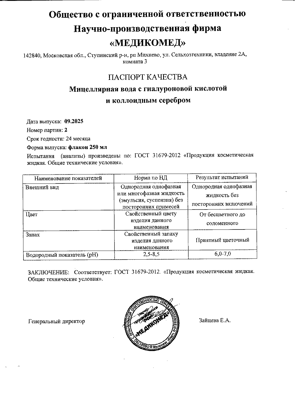 Читать далееМицеллярная вода с гиалуроновой кислотой и коллоидным серебром, 250 мл, флакон