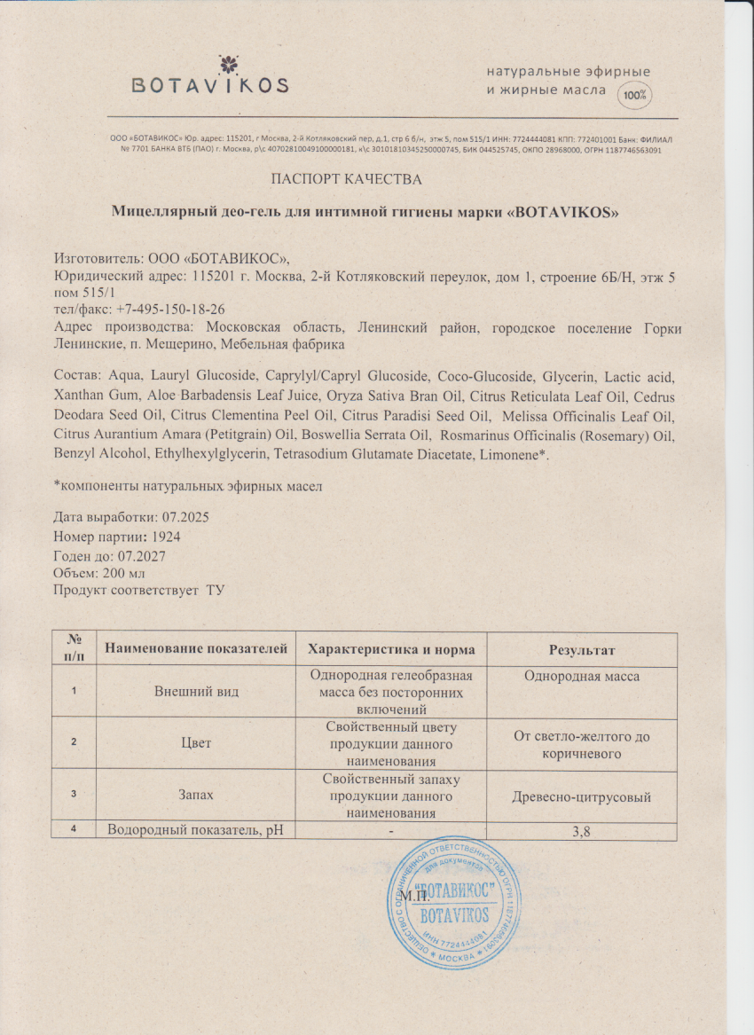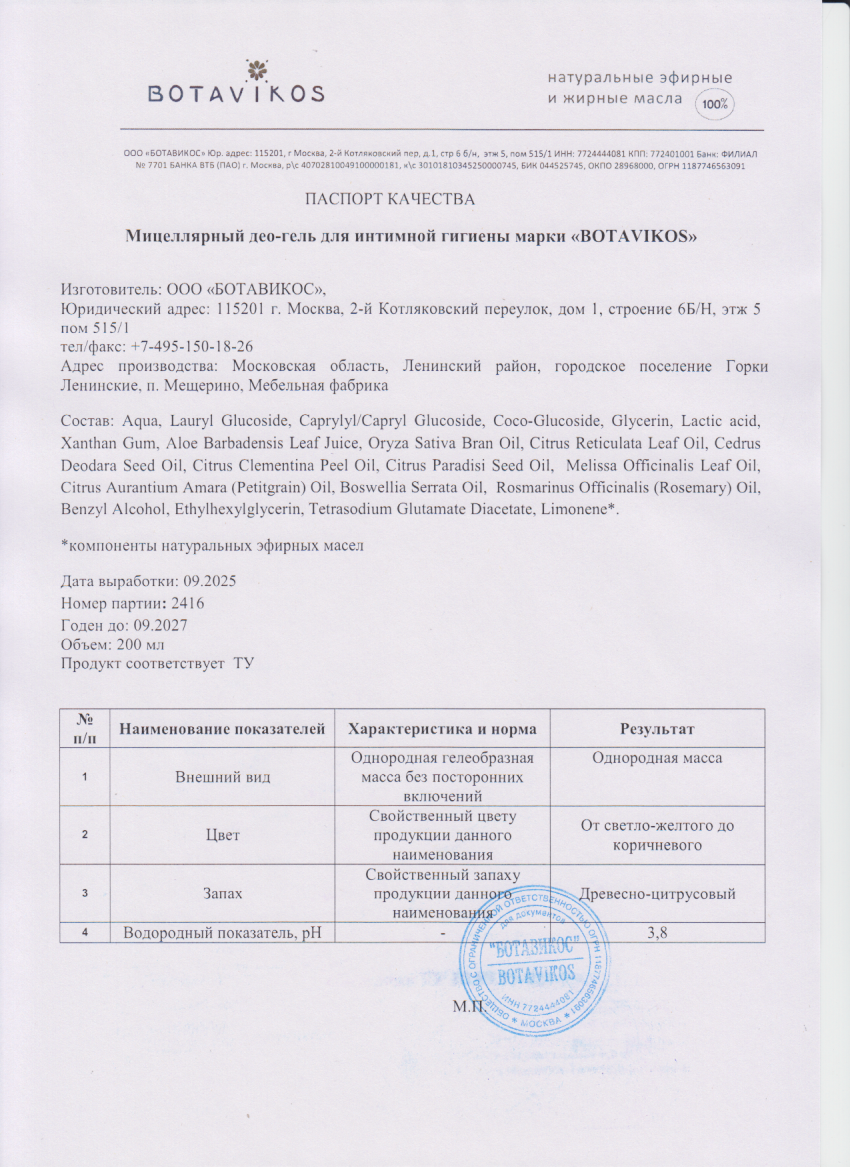 Читать далееДео-гель мицеллярный для интимной гигиены 200 мл"Botavikos" 977