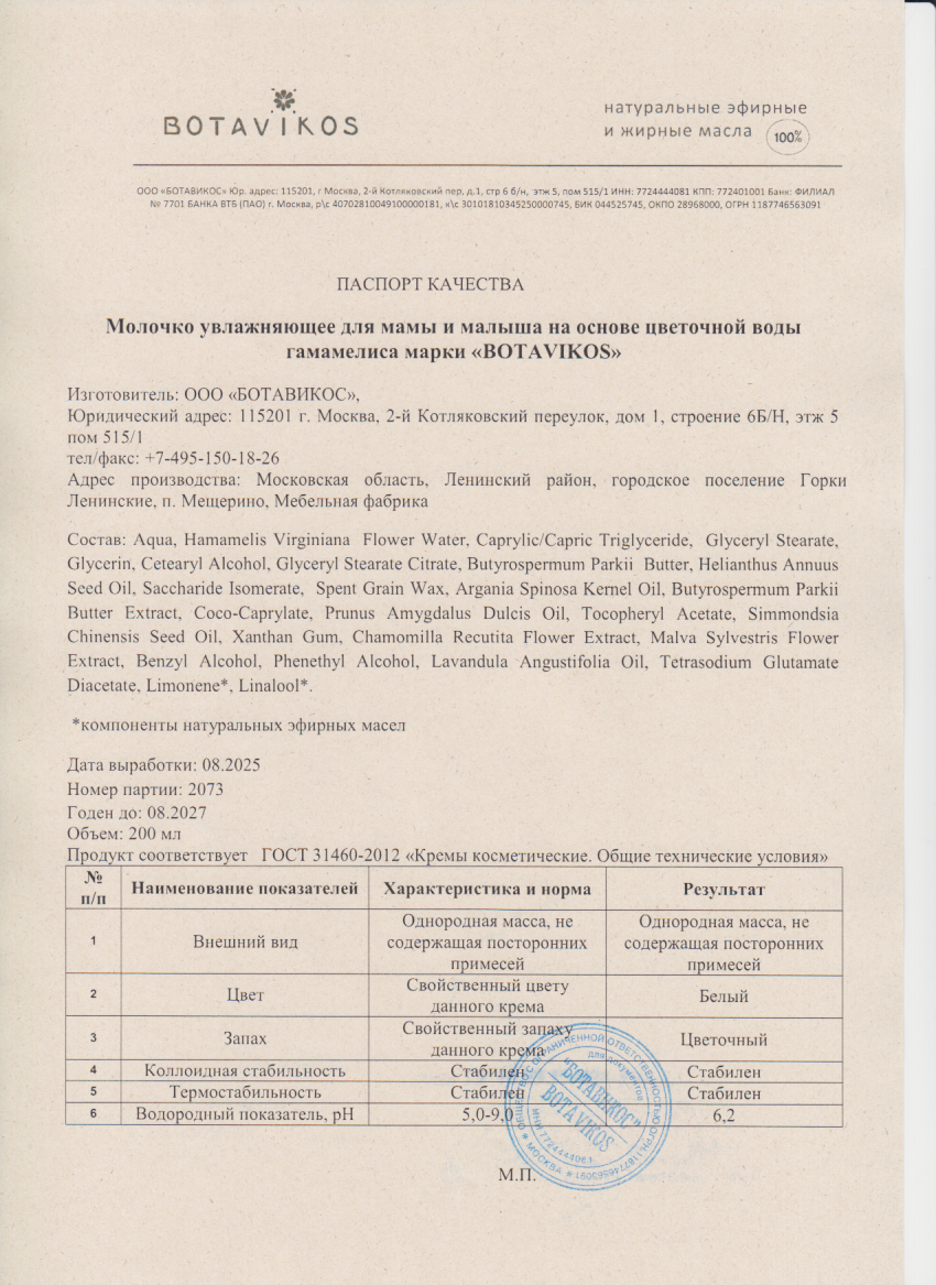 Читать далееМолочко увлажняющее для мамы и малыша на основе цветочной воды гамамелиса 200 мл "Botavikos"