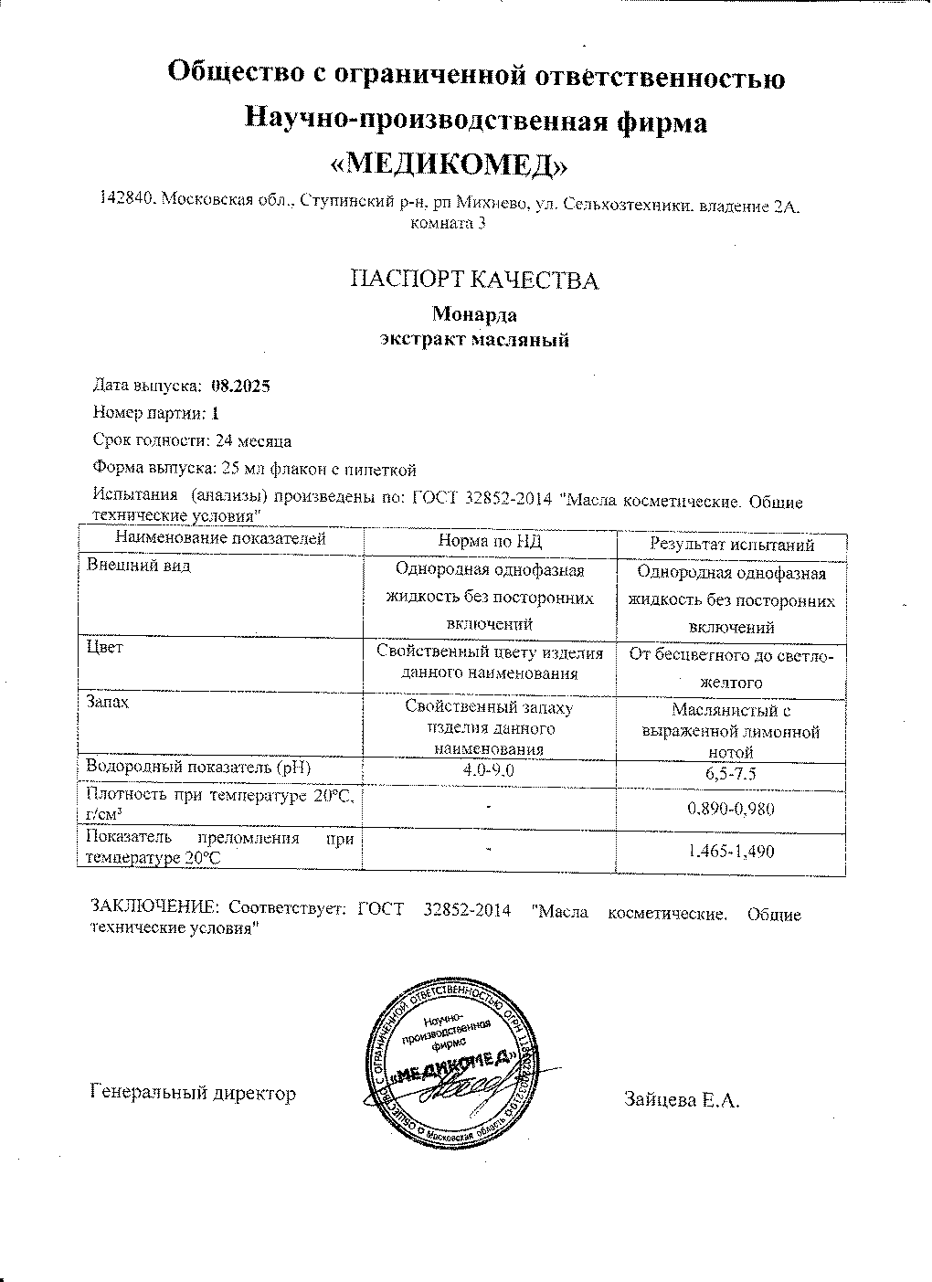 Монарда экстракт масляный фл.25мл (с пипеткой) "МедикоМед"