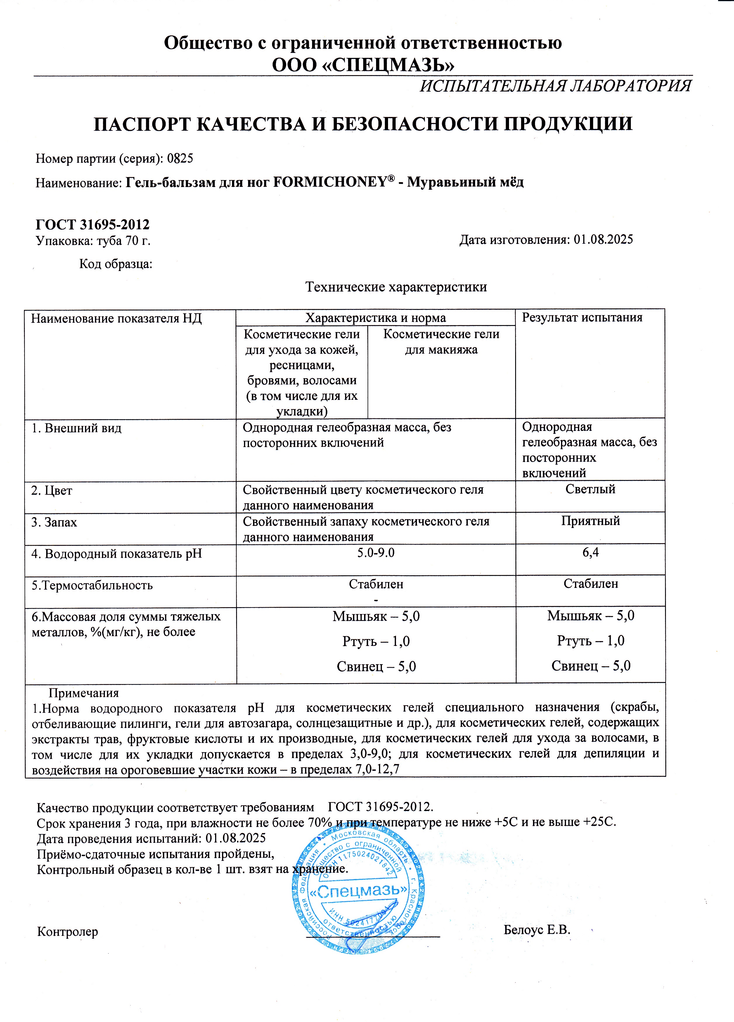 Читать далееМуравьиный мед - FORMICHONEY гель-бальзам для ног с хондролоном 70 г