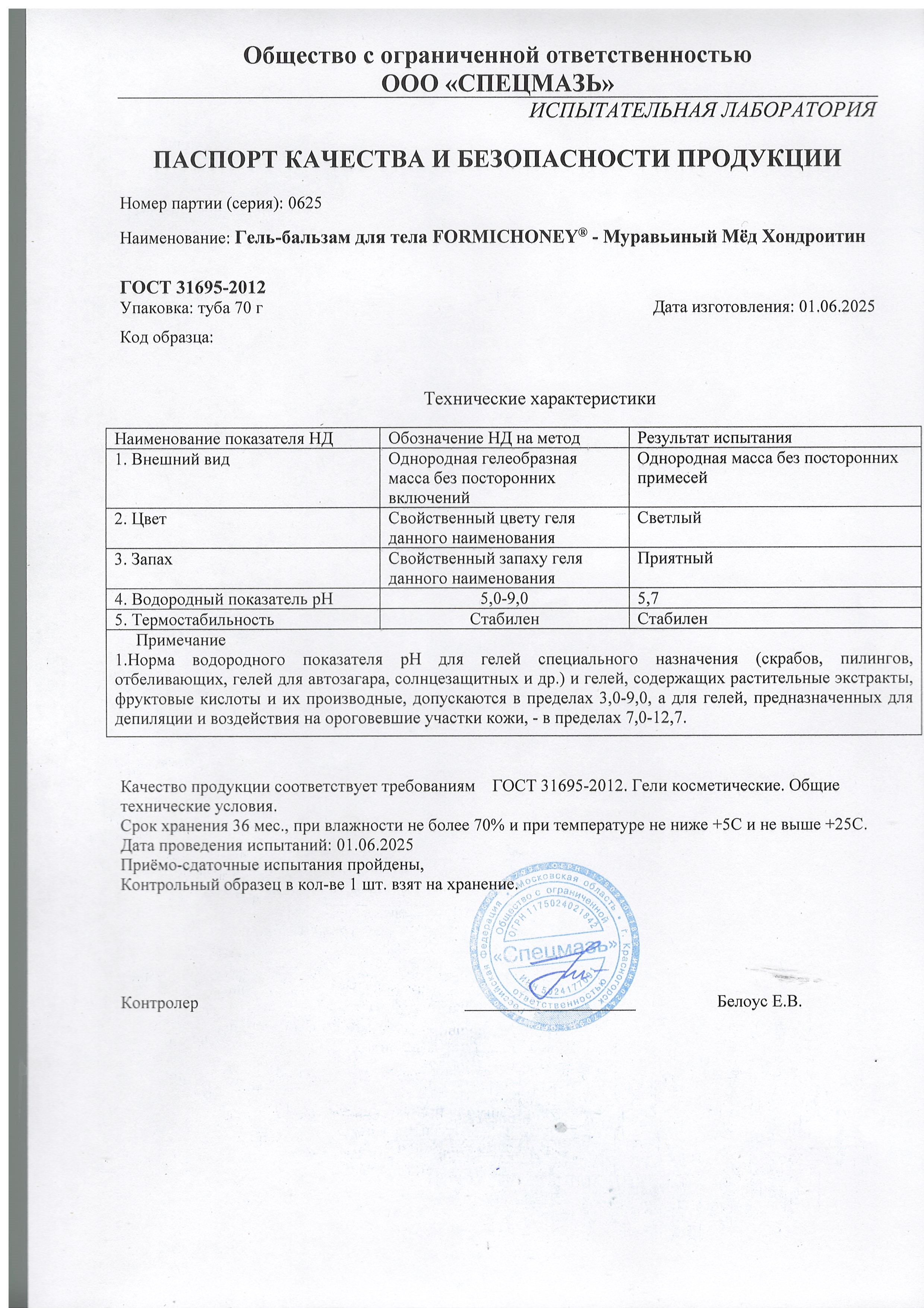 Муравьиный мед - FOMICHONEY® гель-бальзам для тела Хондроитин, 70 г