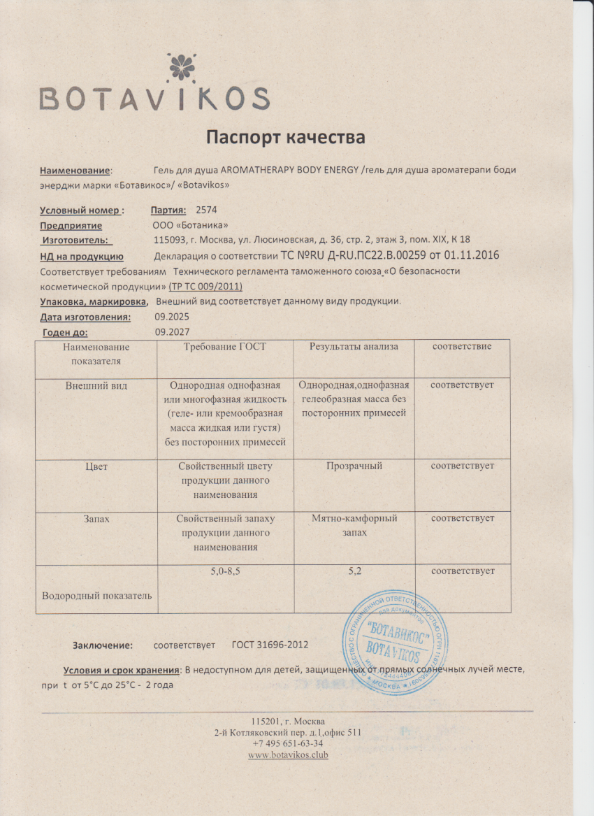 Читать далееНатуральный гель для душа Aromatherapy Energy 1000 мл "Botavikos"