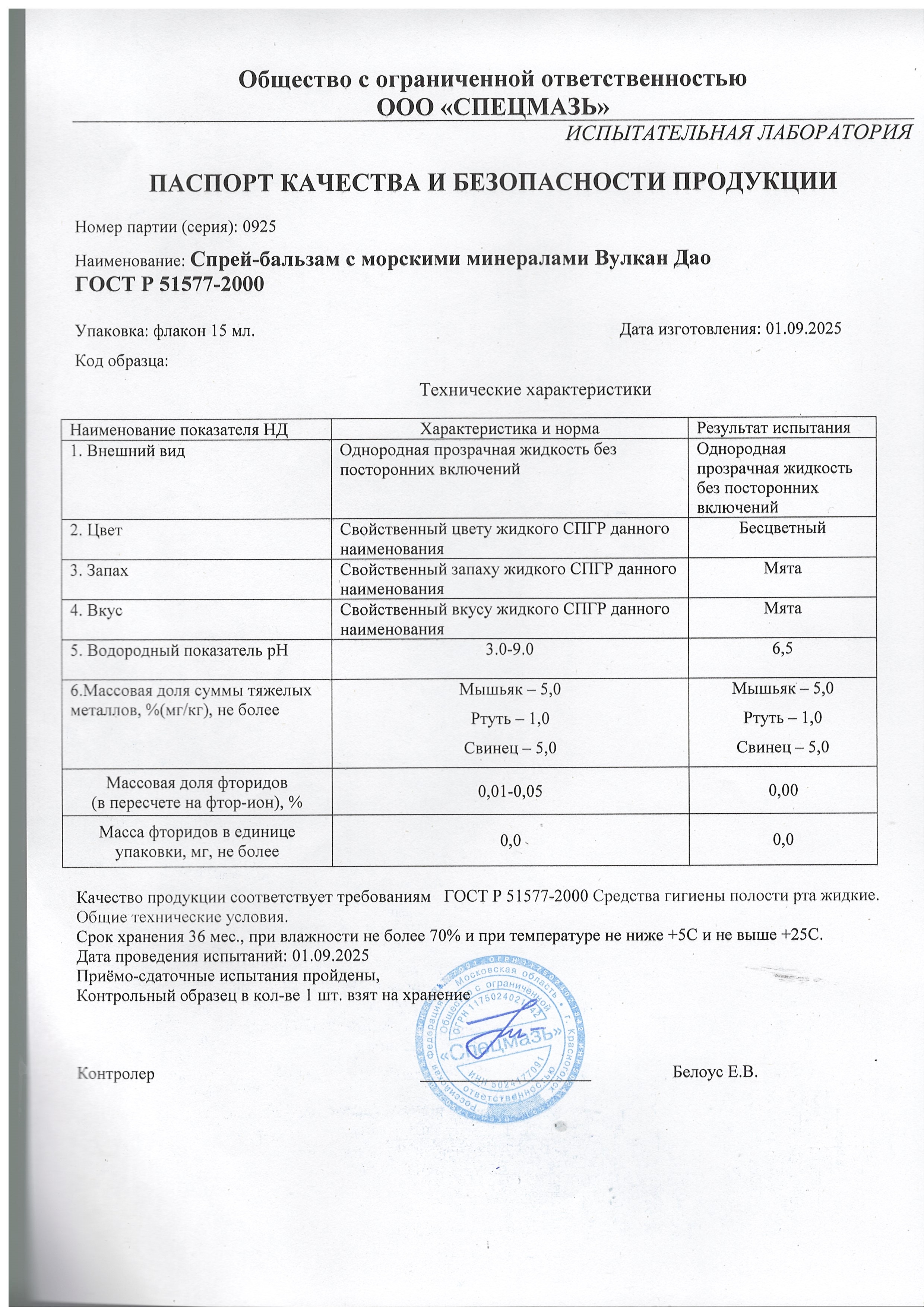 НОСОСПАС Спрей-бальзам с морскими минералами Вулкан Дао 15мл Спецмазь