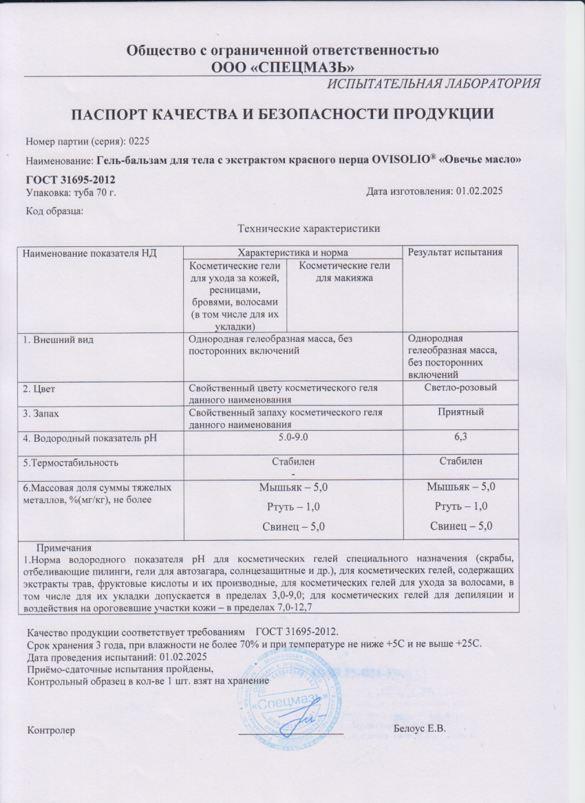 ОвисОлио / "OvisOlio® - Овечье масло" Гель-бальзам для тела согревающий с экстрактом красного перца, 70 г