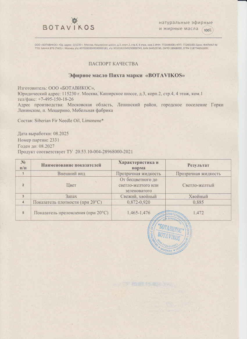 Пихта сибирская 100% эфирное масло 10 мл, "Botavikos"