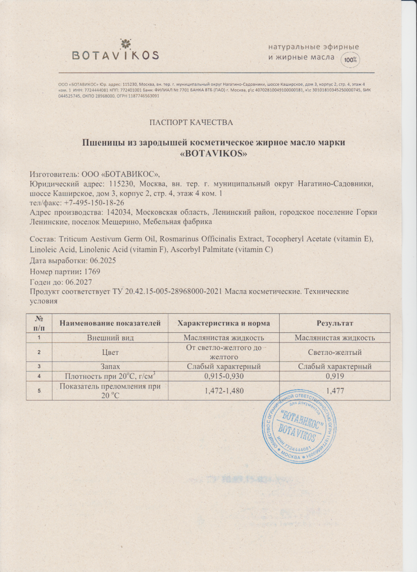 Пшеница из зародышей 100% жирное масло 30 мл, "Botavikos"