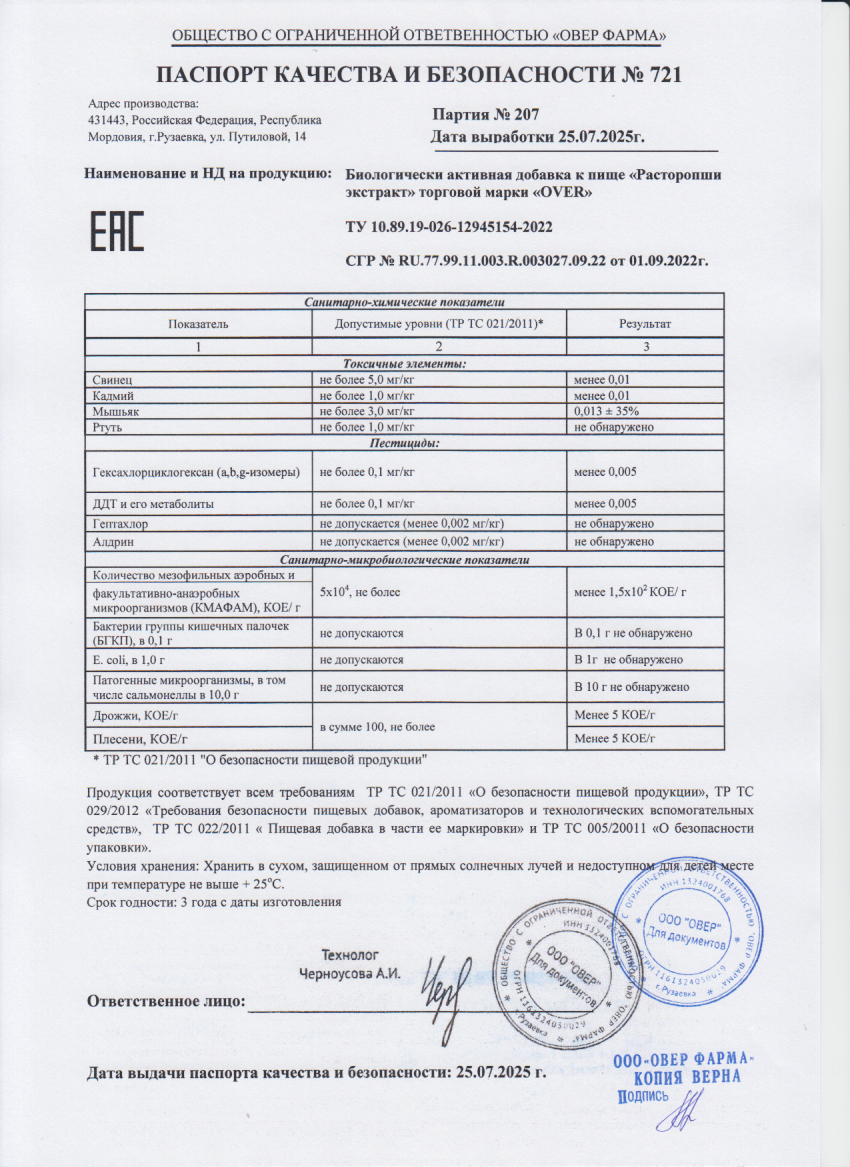 Читать далееРасторопши экстракт 60 капсул (OVERVit) БАД