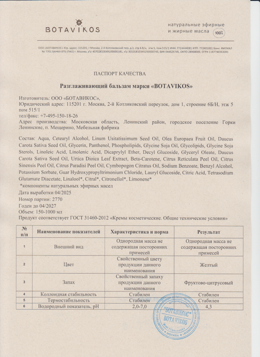 Читать далееБальзам разглаживающий для непослушных волос, 200 мл "Botavikos" 548 **