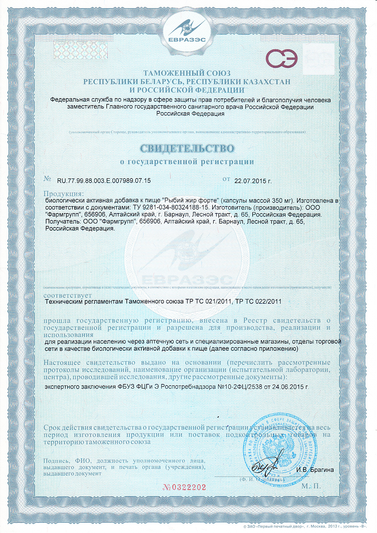 Рыбий жир форте. Рекомендуется в качестве дополнительного источника витамина Д, полиненасыщенных жирных кислот Омега-3.