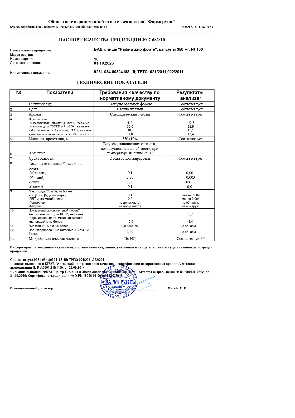 Рыбий жир форте. Рекомендуется в качестве дополнительного источника витамина Д, полиненасыщенных жирных кислот Омега-3....