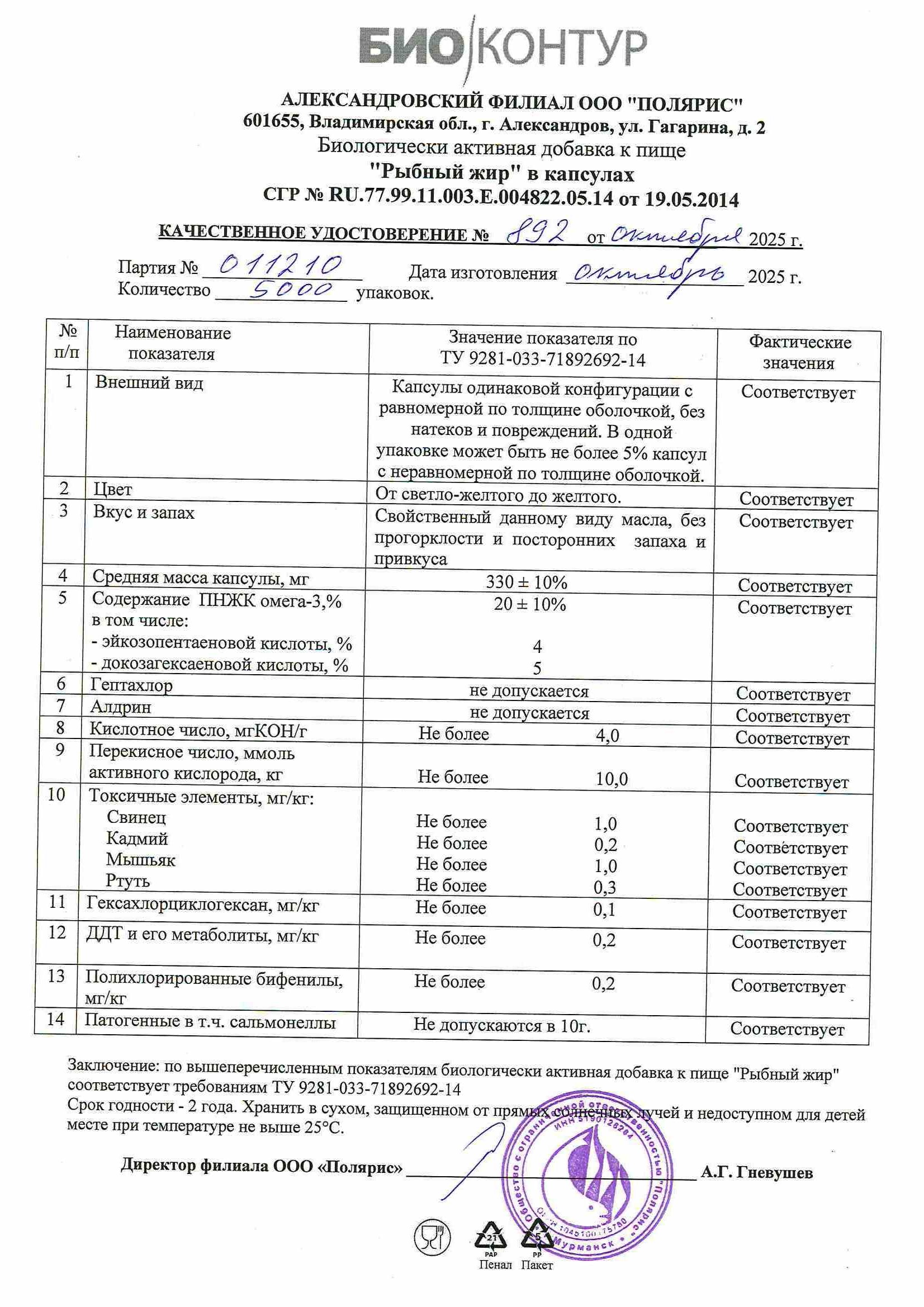 Читать далееРыбный жир пищевой "БиоКонтур" - БАД, № 100 капс. х 0,33 г