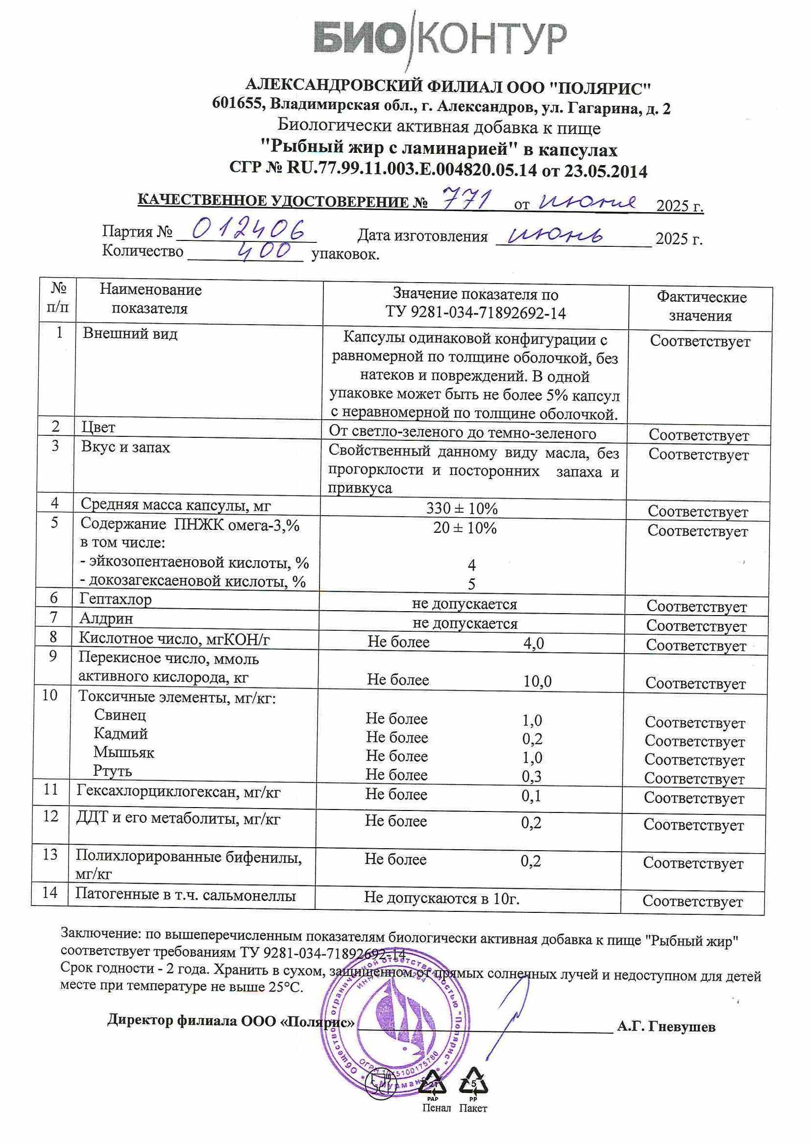 Читать далееРыбный жир с ламинарией "БиоКонтур" - БАД, № 100 капс. х 0,33 г