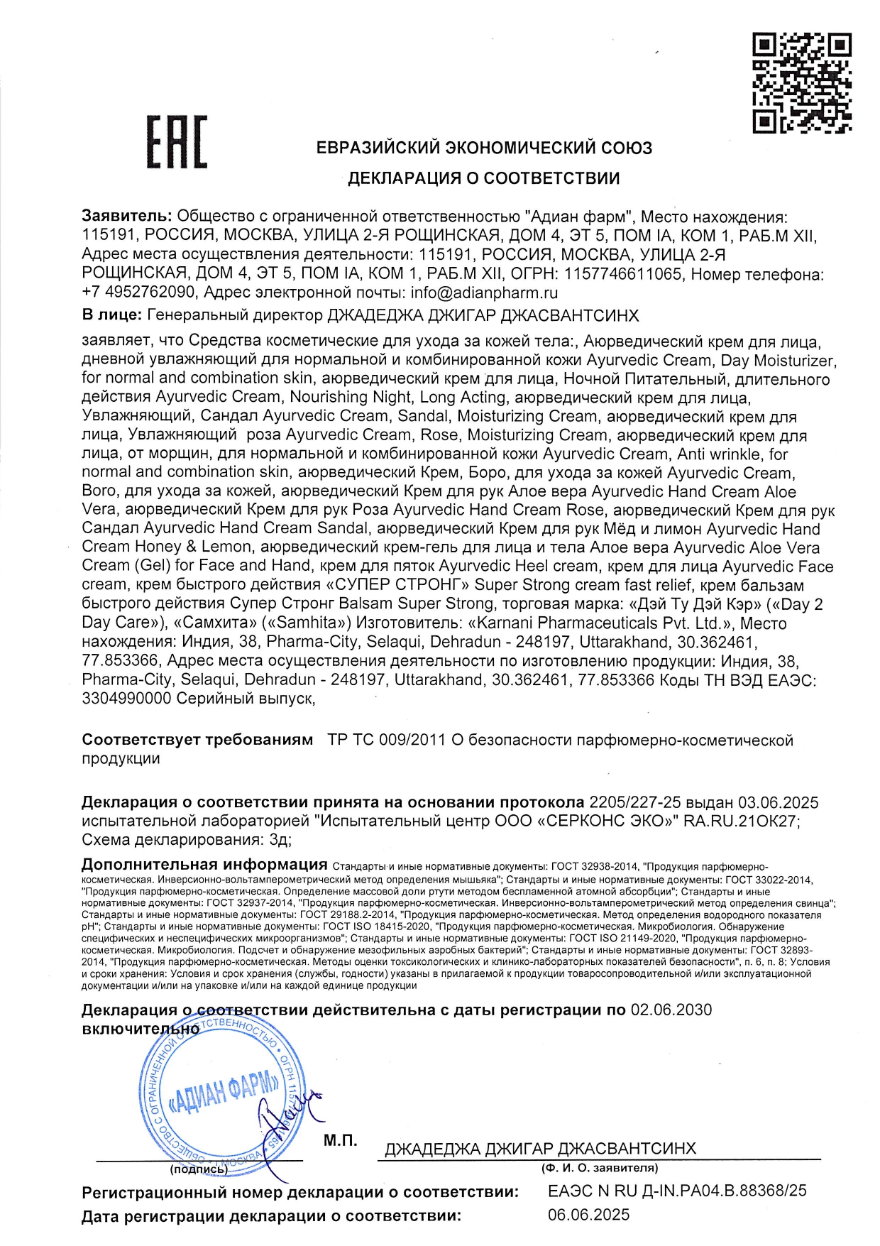 Легкая текстура позволяет крему быстро впитываться. Крем создан с учетом древних аюрведических рецептов и последних достижений в области технологий по уходу за кожей.