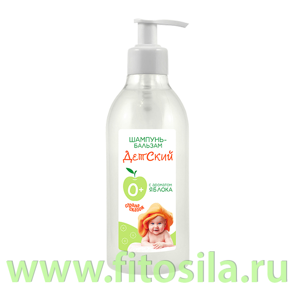 Шампунь-бальзам детский "Страна сказок" "С ароматом яблока" с экстрактом календулы для детей с рождения, разработано с учетом особенностей детского организма.