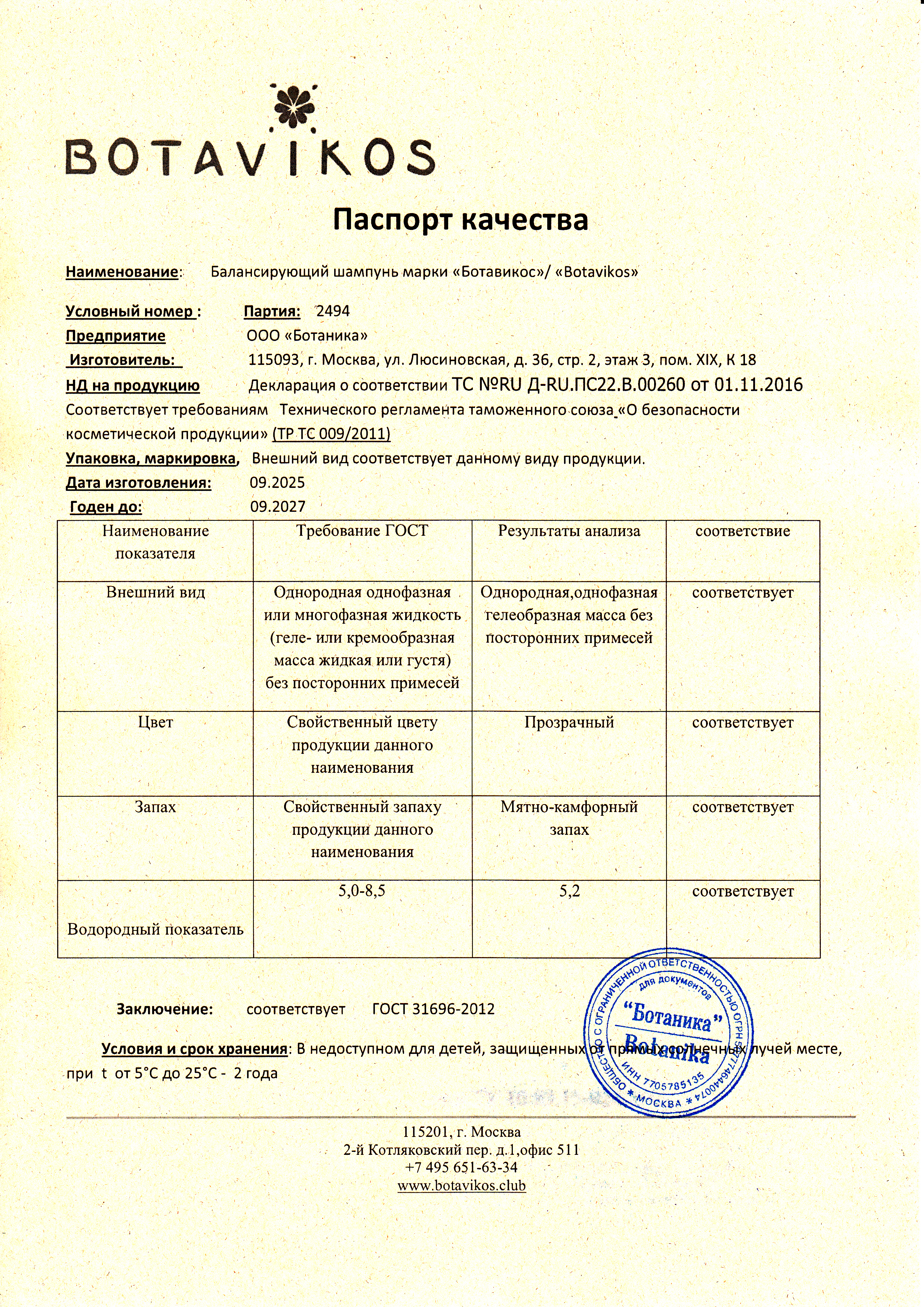Читать далееШампунь для волос балансирующий, 200 мл, "Botavikos"