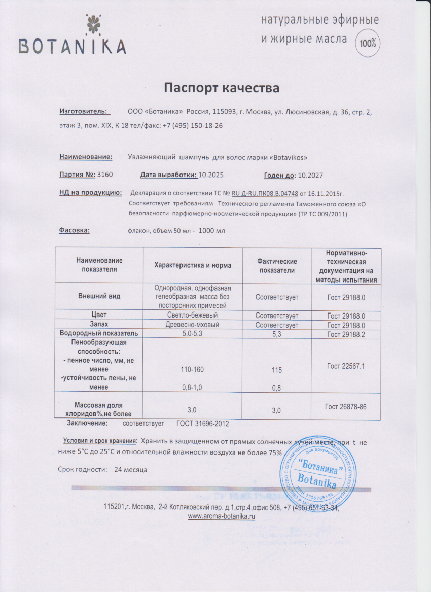 Читать далееШампунь для волос увлажняющий, 1л, "Botavikos"