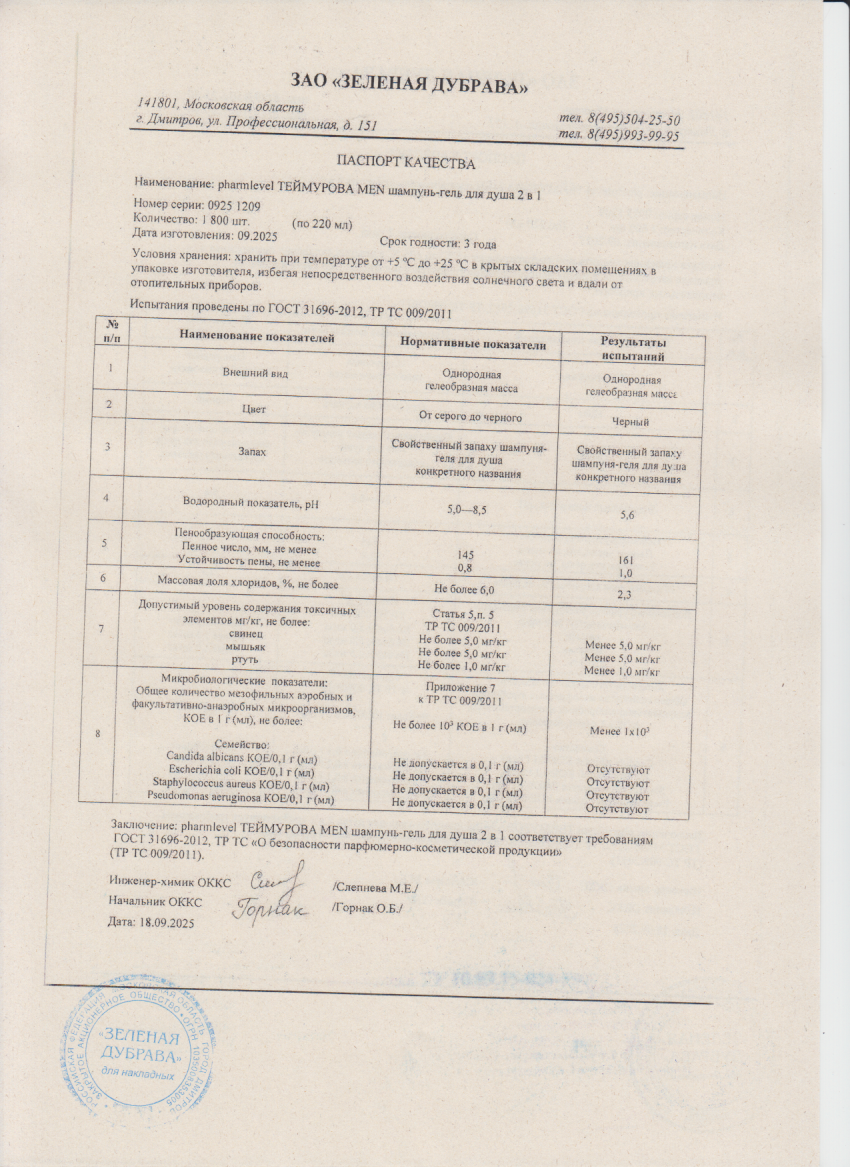 Шампунь-гель для душа 2в1 220 мл ТЕЙМУРОВА MEN pharmlevel