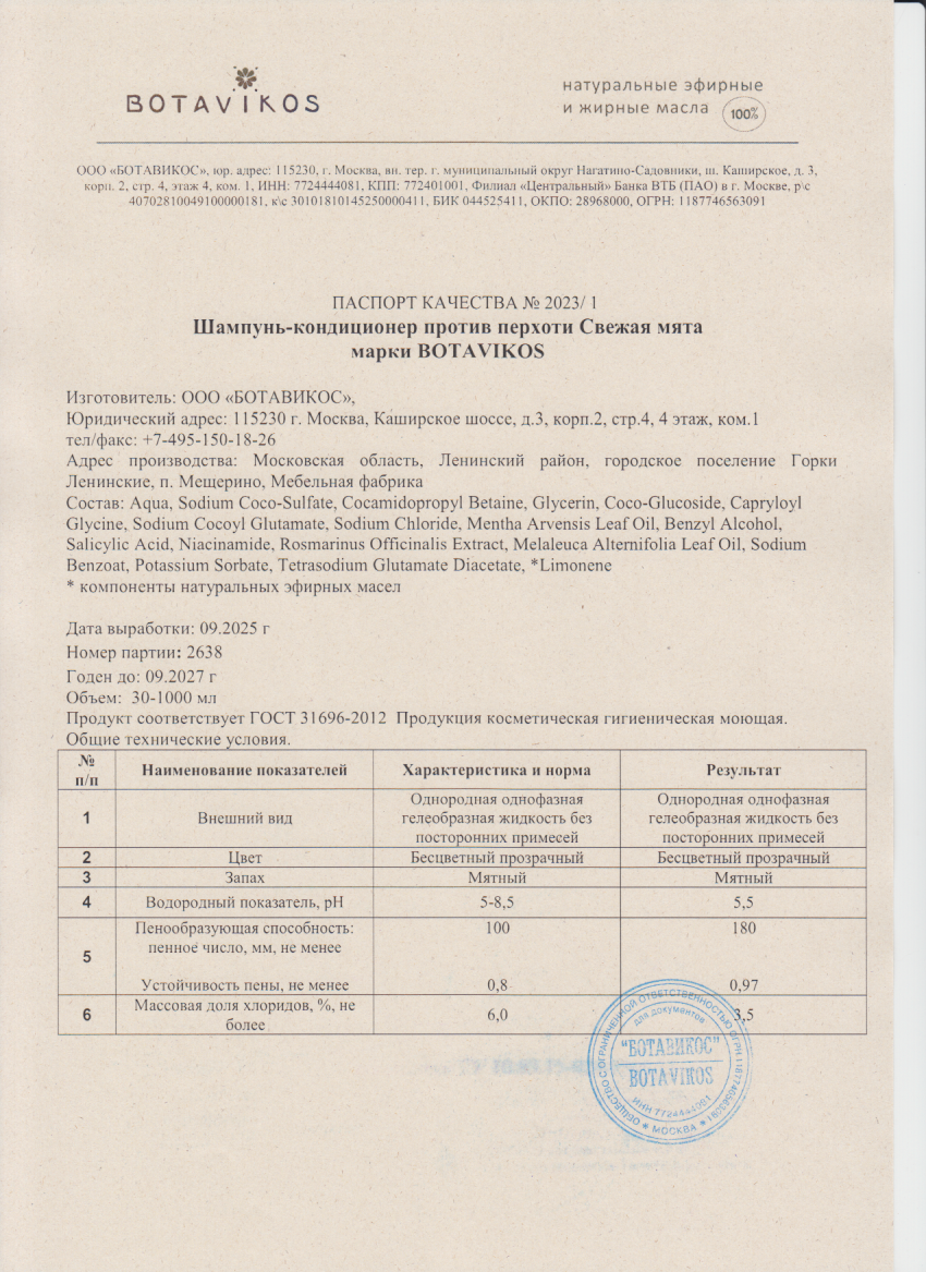 Читать далееШампунь-кондиционер против перхоти Свежая мята, 470мл "Botavikos"