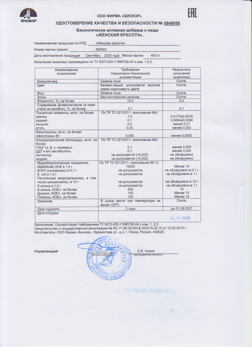 Семена белого льна «Биокор «Женская красота» – натуральный продукт, благоприятно влияющий на женское здоровье (способствует нормализации гормонального...