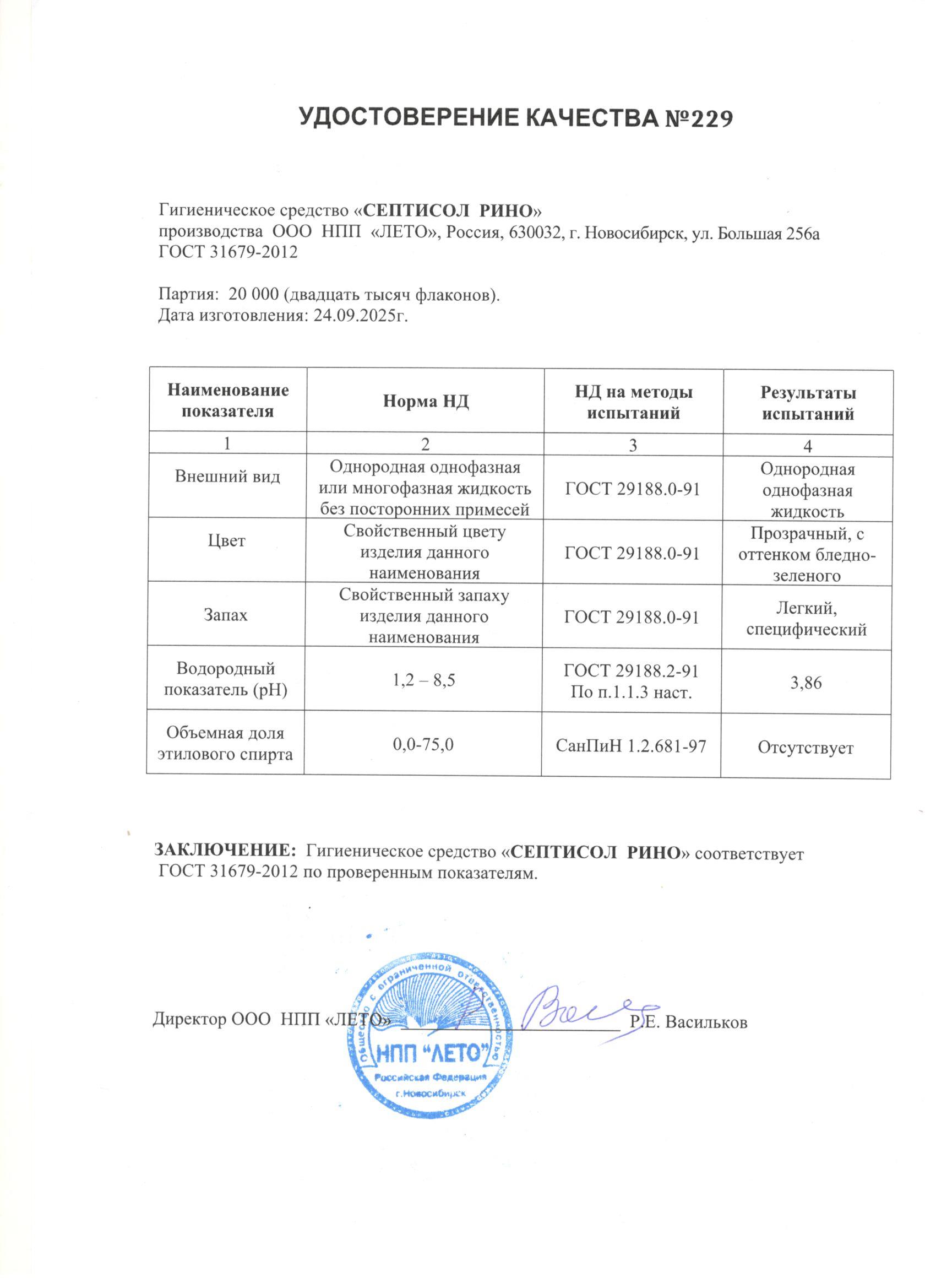 Главным действующим звеном Септисол Рино является природное противовоспалительное средство Септисол. Септисол Рино - средство для местного применения ...