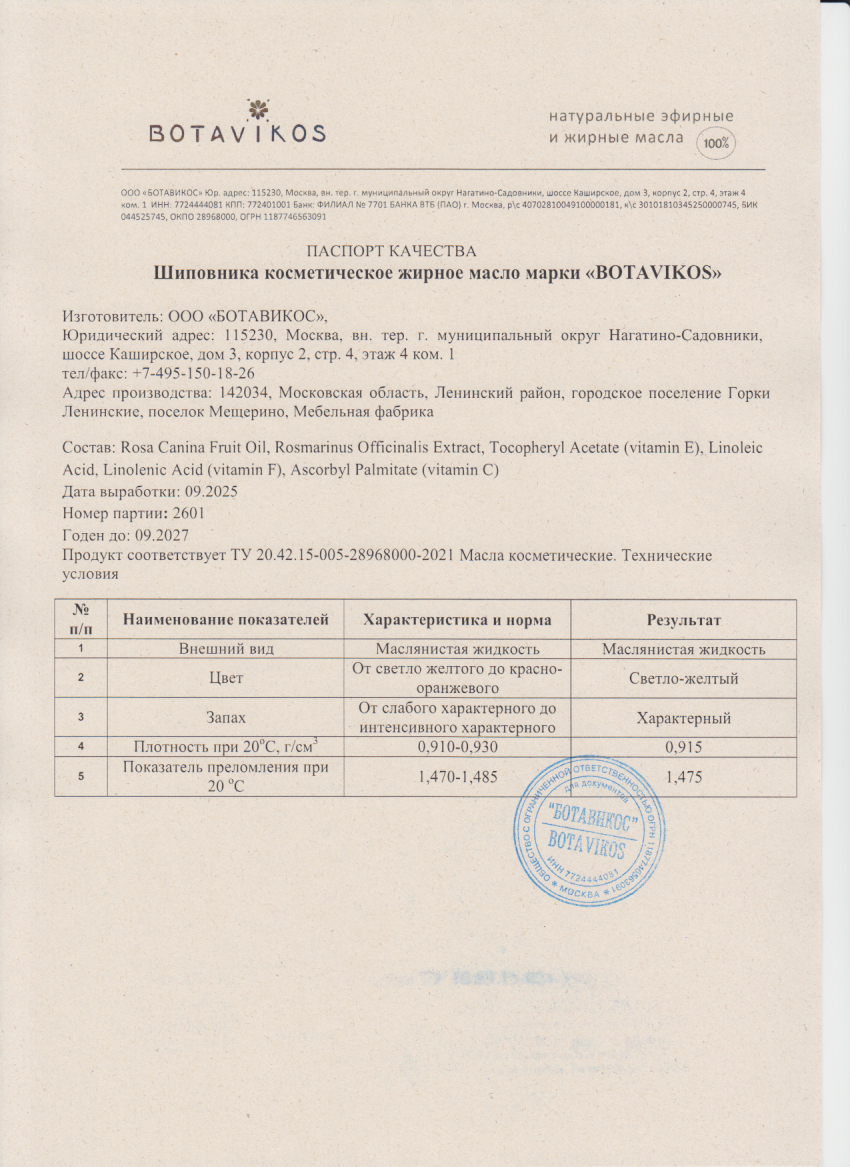Читать далееШиповник 100% жирное масло 30 мл, "Botavikos"