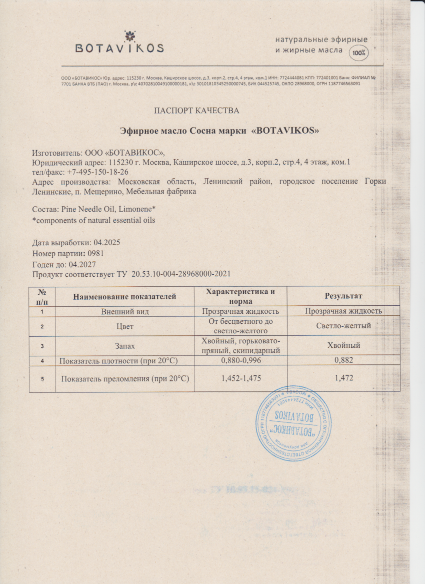 Сосна обыкновенная 100% эфирное масло 10 мл, "Botavikos"
