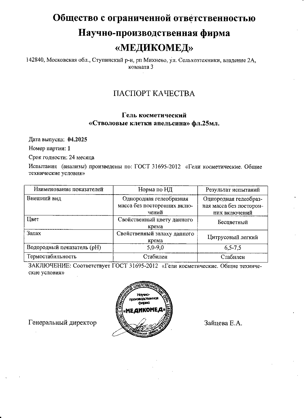 Стволовые клетки апельсина Гель косметический фл.25мл (с пипеткой) "МедикоМед"