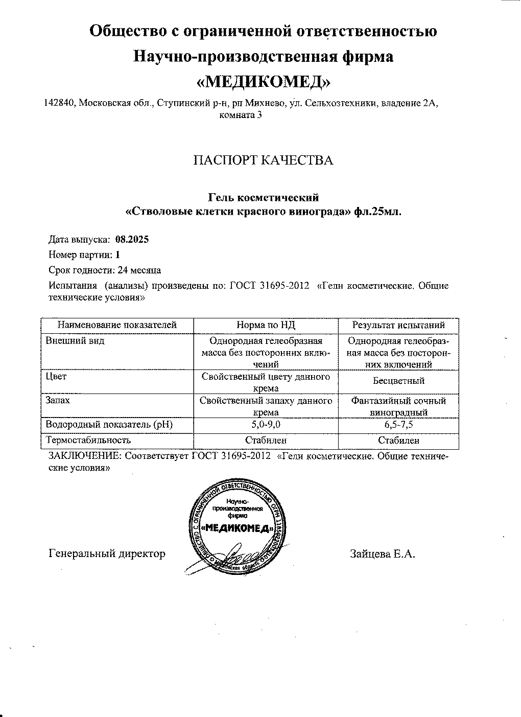 Стволовые клетки красного винограда Гель косметический фл.25мл (с пипеткой) "МедикоМед"