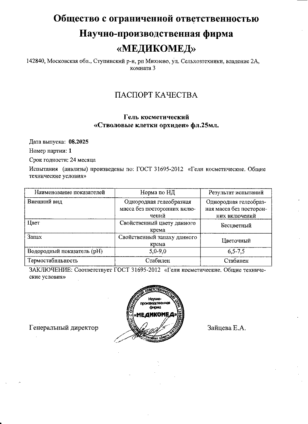 Стволовые клетки орхидеи Гель косметический фл.25мл (с пипеткой) "МедикоМед"
