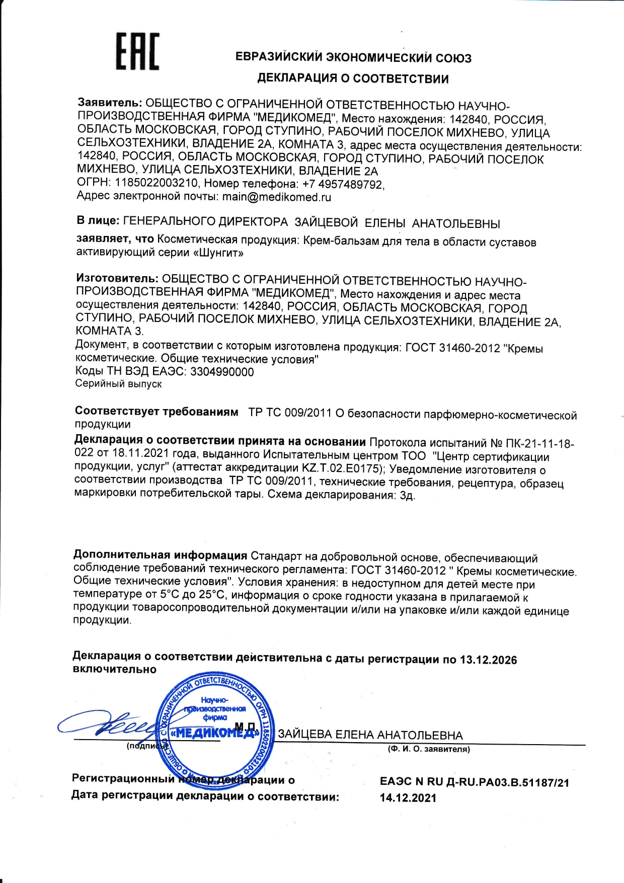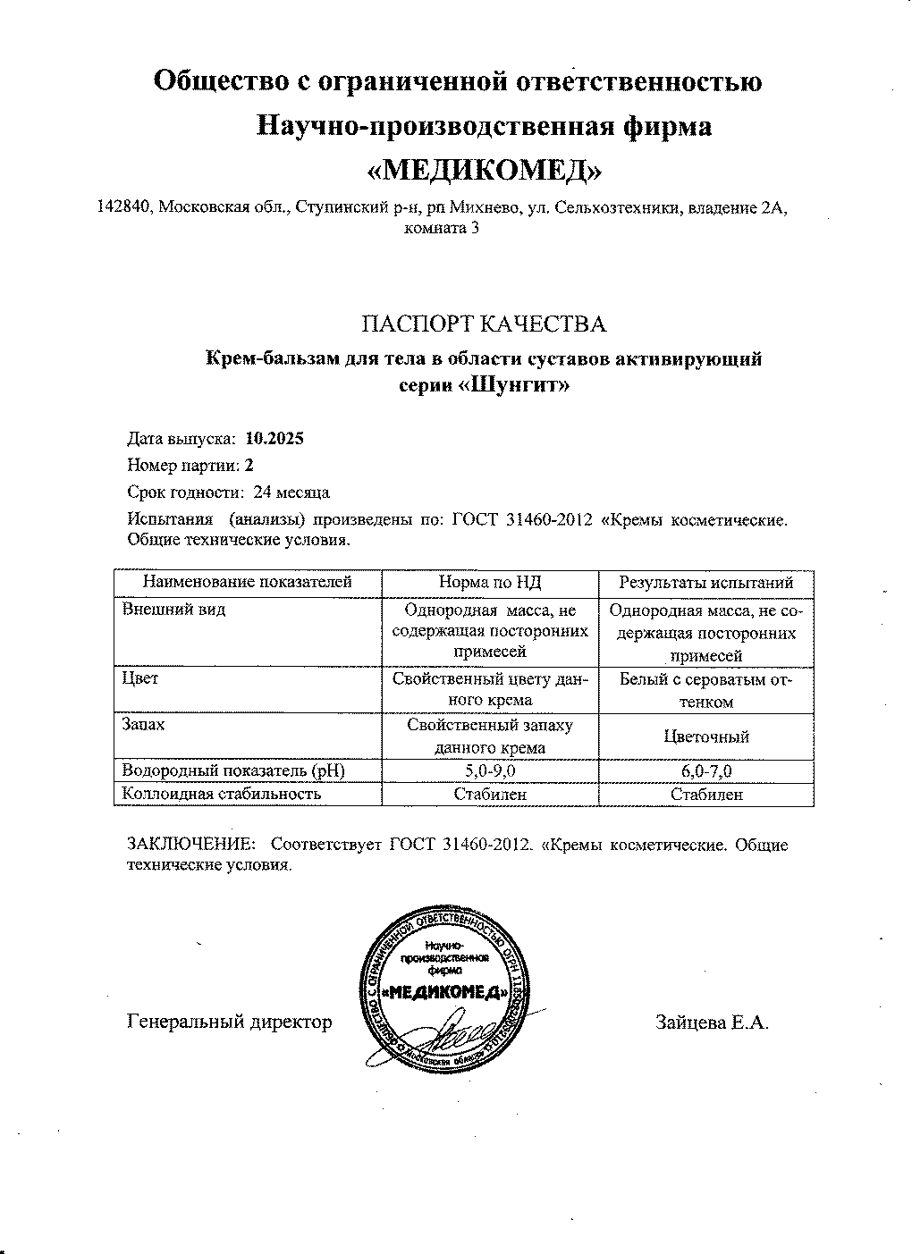 Шунгит крем-бальзам для тела в области суставов Активирующий банка 50 мл "МедикоМед"