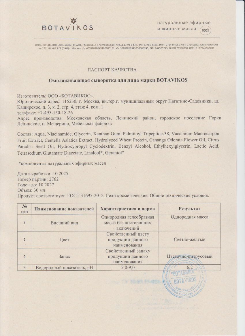 Читать далееСыворотка для лица Омолаживающая 30мл "Botavikos"