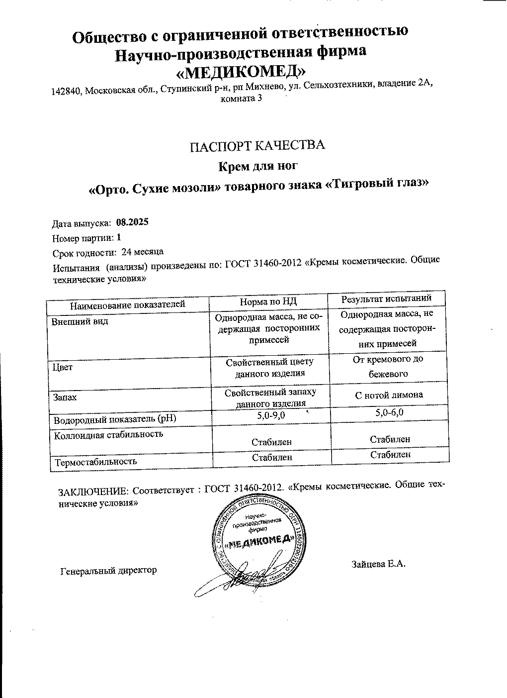 Крем для ног ТИГРОВЫЙ ГЛАЗ Орто - сухие мозоли: - эффективно размягчает мозолистые образования и облегчает их удаление без риска травмировать кожу; - питает и смягчает кожу, предупреждает возникновение трещин; - устраняет дискомфорт, особенно при длительных нагрузках на ноги; - экстракты лекарственных растений и эфирные масла, входящие в состав крема, обладают кератолитическим, противовоспалительным, фунгицидным и дезодорирующим действием.