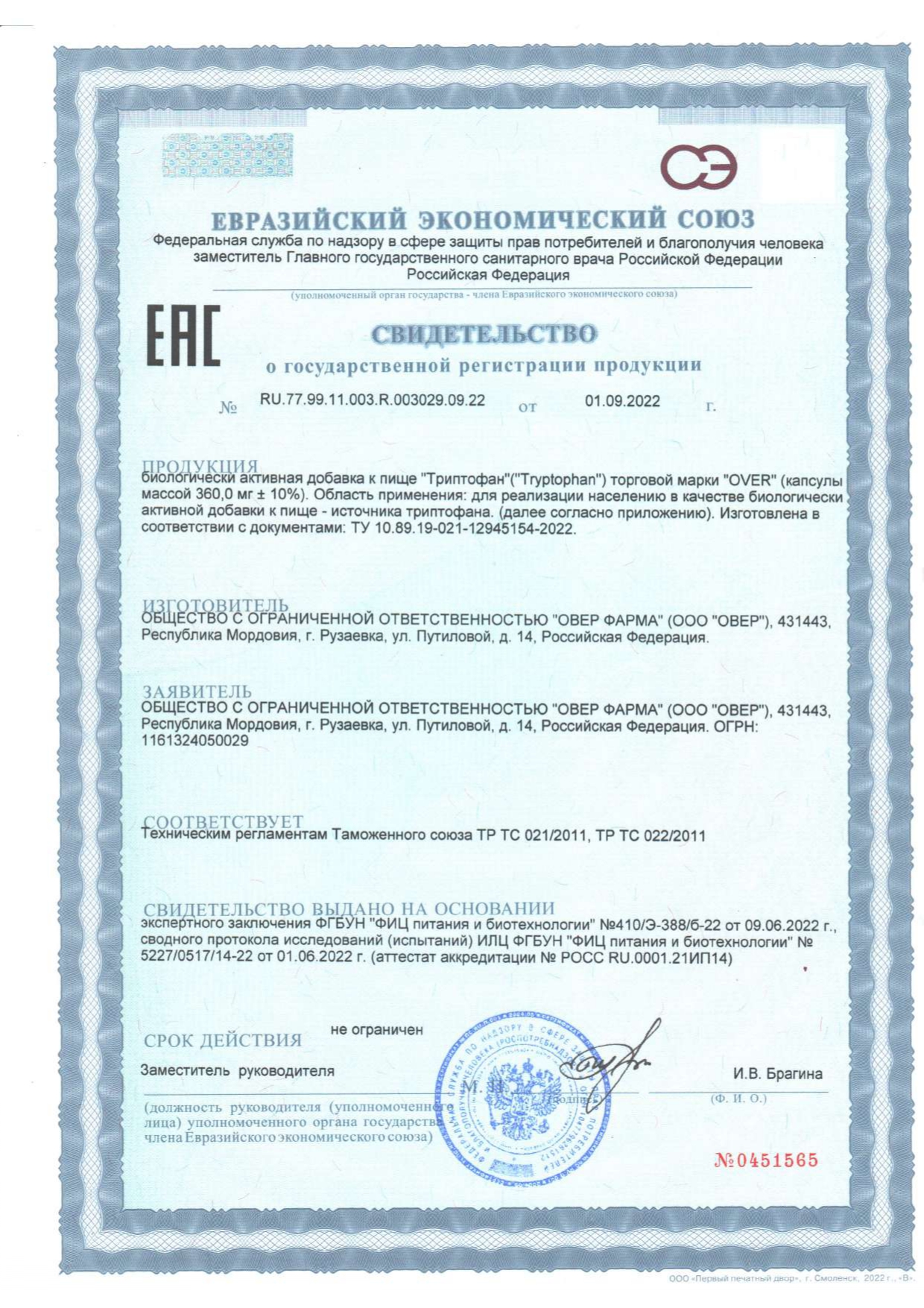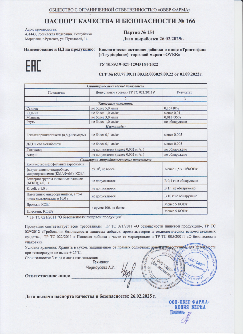Читать далееТриптофан 90 капсул (OVERVit) БАД