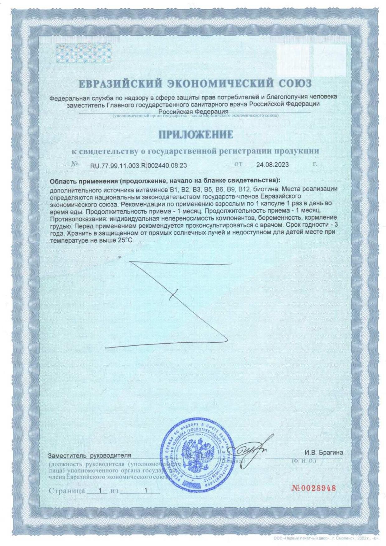 Весь комплекс витаминов группы В включен в В-комплекс в оптимальных дозировках, способных поддерживать умственные способности, быстроту реакции, здоровье нервной системы и правильную выработку энергии клетками организма.