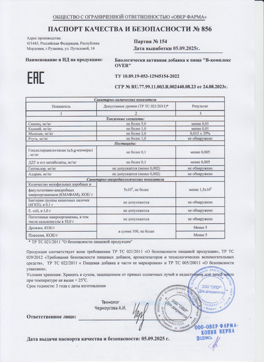 Читать далееВ-комплекс OVER 30 капсул (OVERVit) БАД