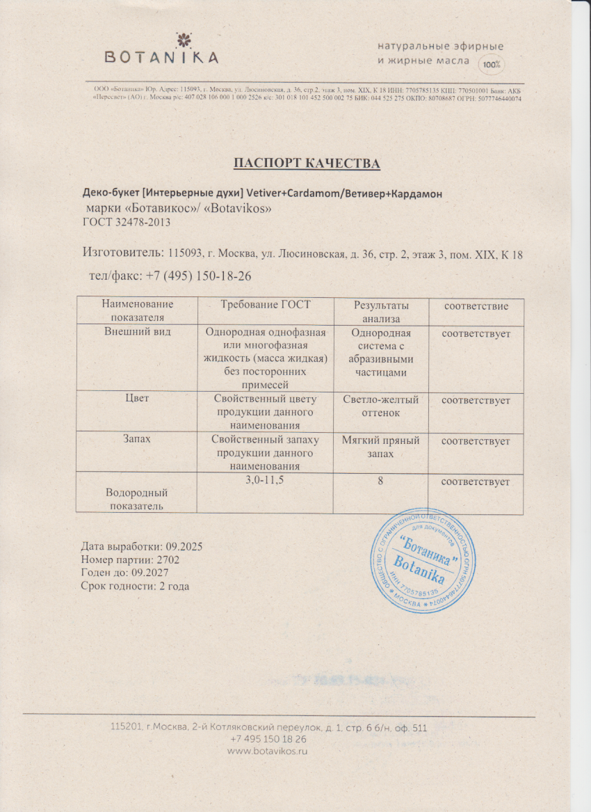 Интерьерные духи ветивер-кардамон. Безопасный и экономичный способ придать помещению восхитительный аромат....