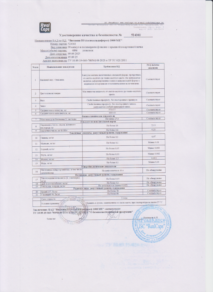Читать далееВитамин D3 1000 МЕ (холекальциферол) капс. 570мг №90 БАД