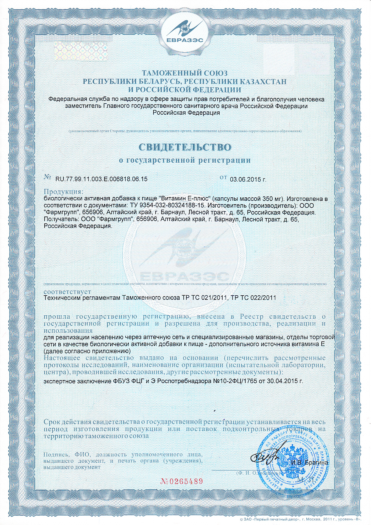 Витамин Е-плюс, капс. 0,35 г № 30 БАД "Фармгрупп"