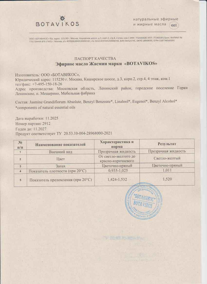 Жасмин 100% эфирное масло 10 мл, "Botavikos"
