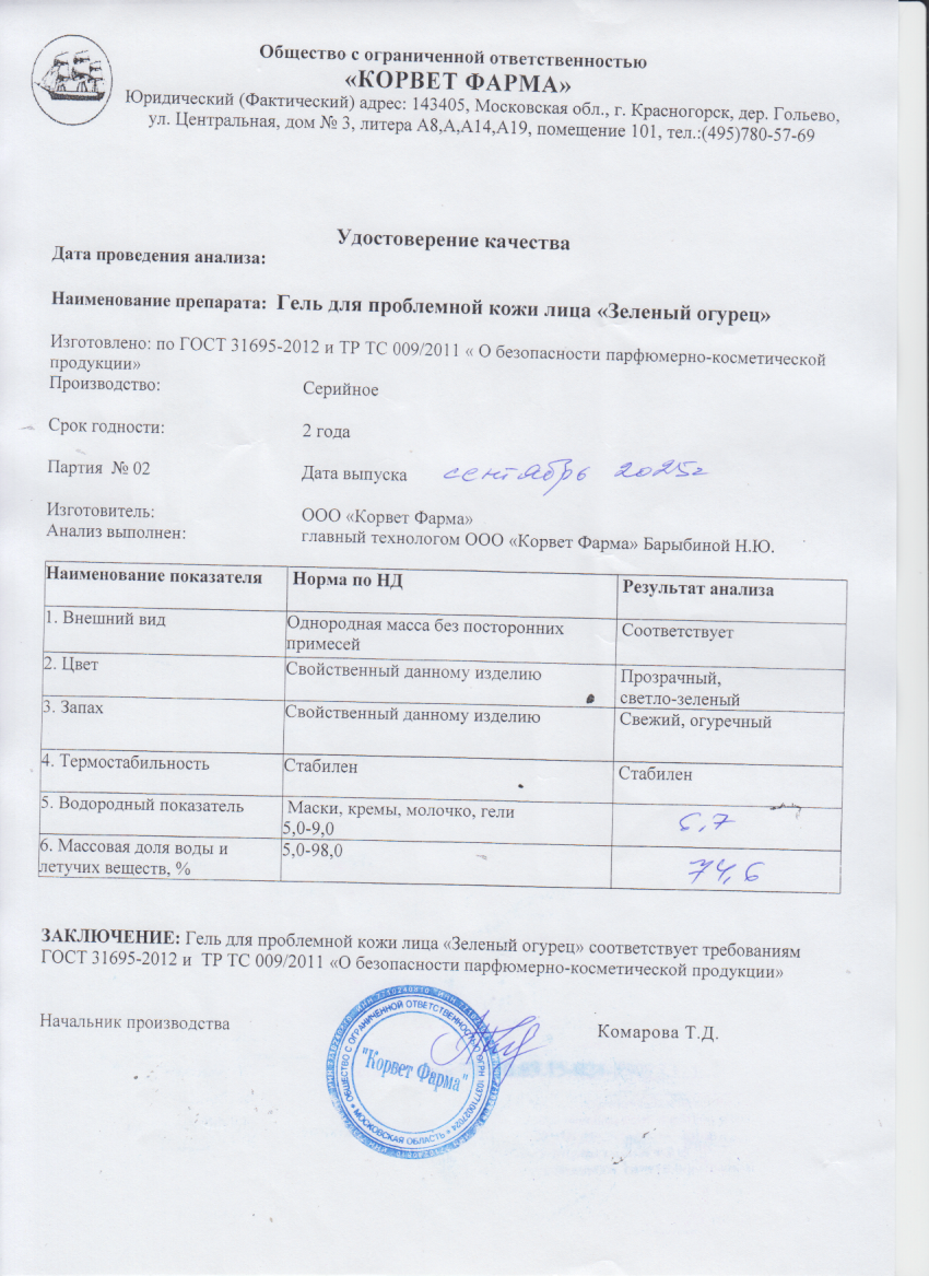 Читать далееЗеленый огурец гель для проблемной кожи лица, 50 г