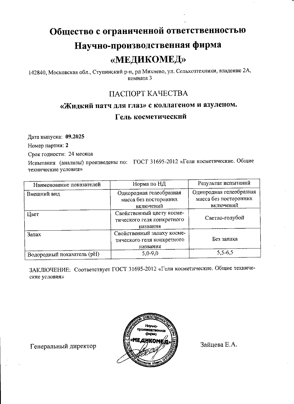 Жидкий Патч для глаз с коллагеном и азуленом гель косметический фл.15мл "МедикоМед"