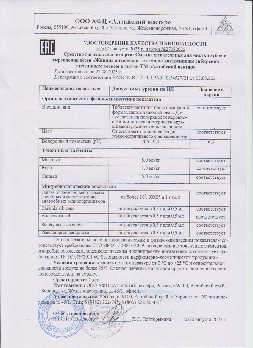 Живица алтайская - это 100% натуральная жевательная резинка, созданная на основе лучших природных компонентов.