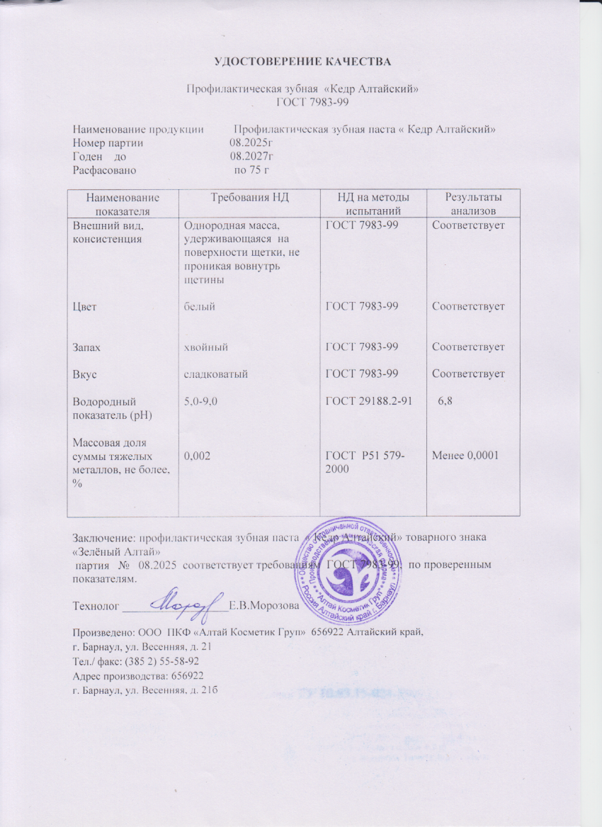 Читать далееЗубная паста "Кедр Алтайский", 75 г, т. м. "Зеленый Алтай"