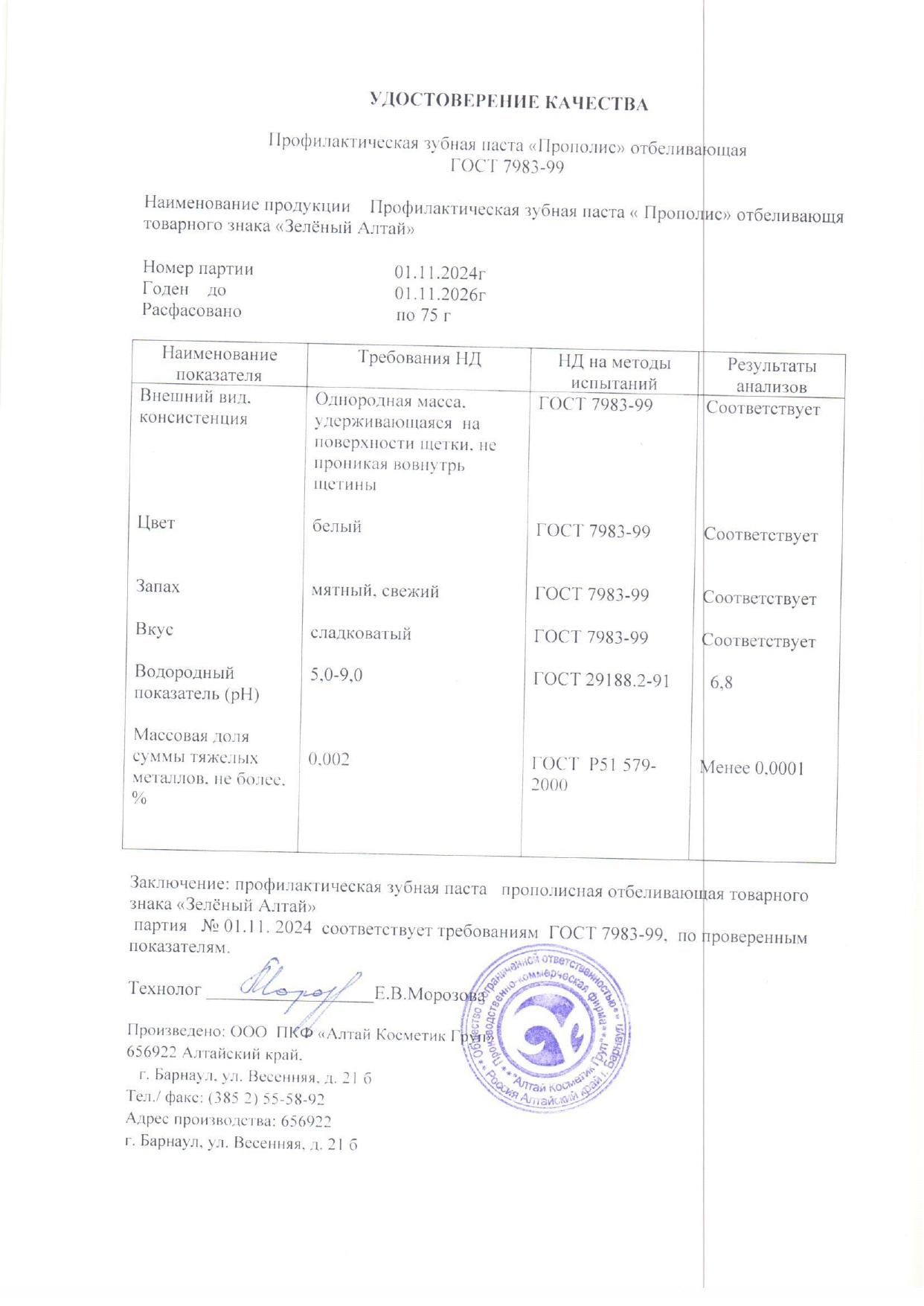 Читать далееЗубная паста Отбеливающая 75 г, т. м. "Зеленый Алтай"