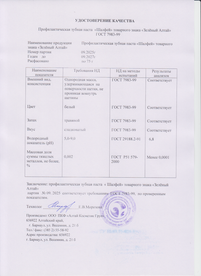 Читать далееЗубная паста "Шалфей", 75 г, т. м. "Зеленый Алтай"